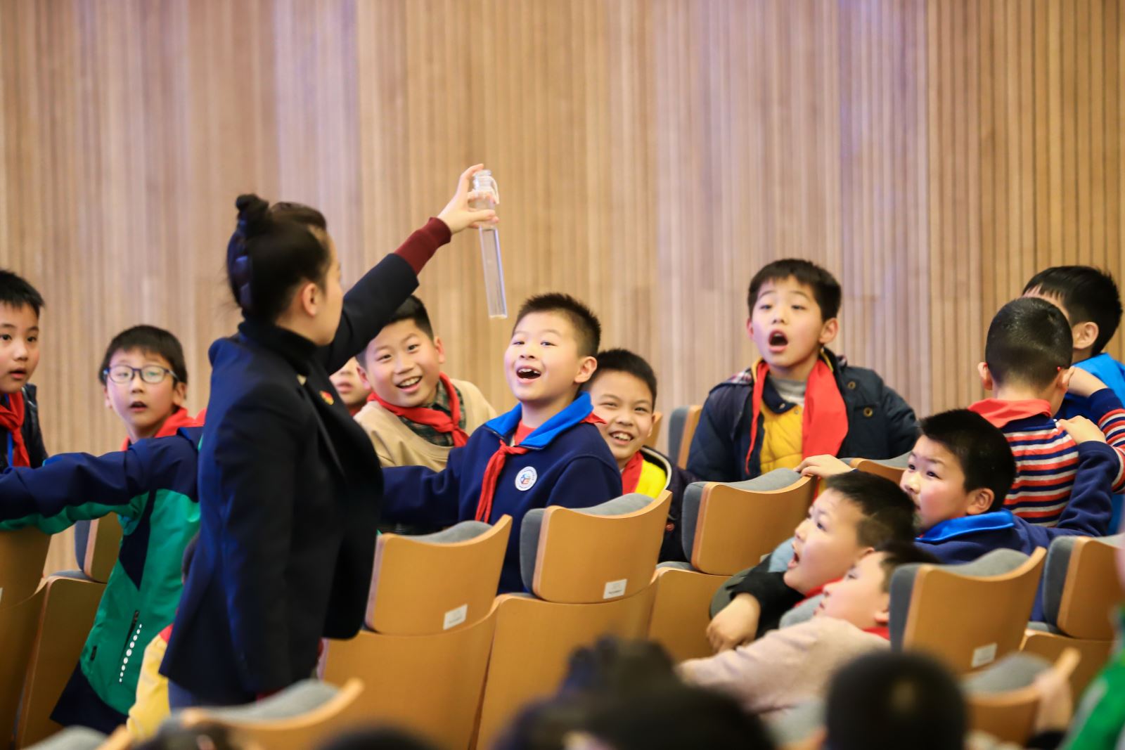 “老师,我们家中自来水为什么有时候会发黄?......”小朋友们对自来水的疑问可不少。老师对小朋友提出的疑问进行耐心地解答。
