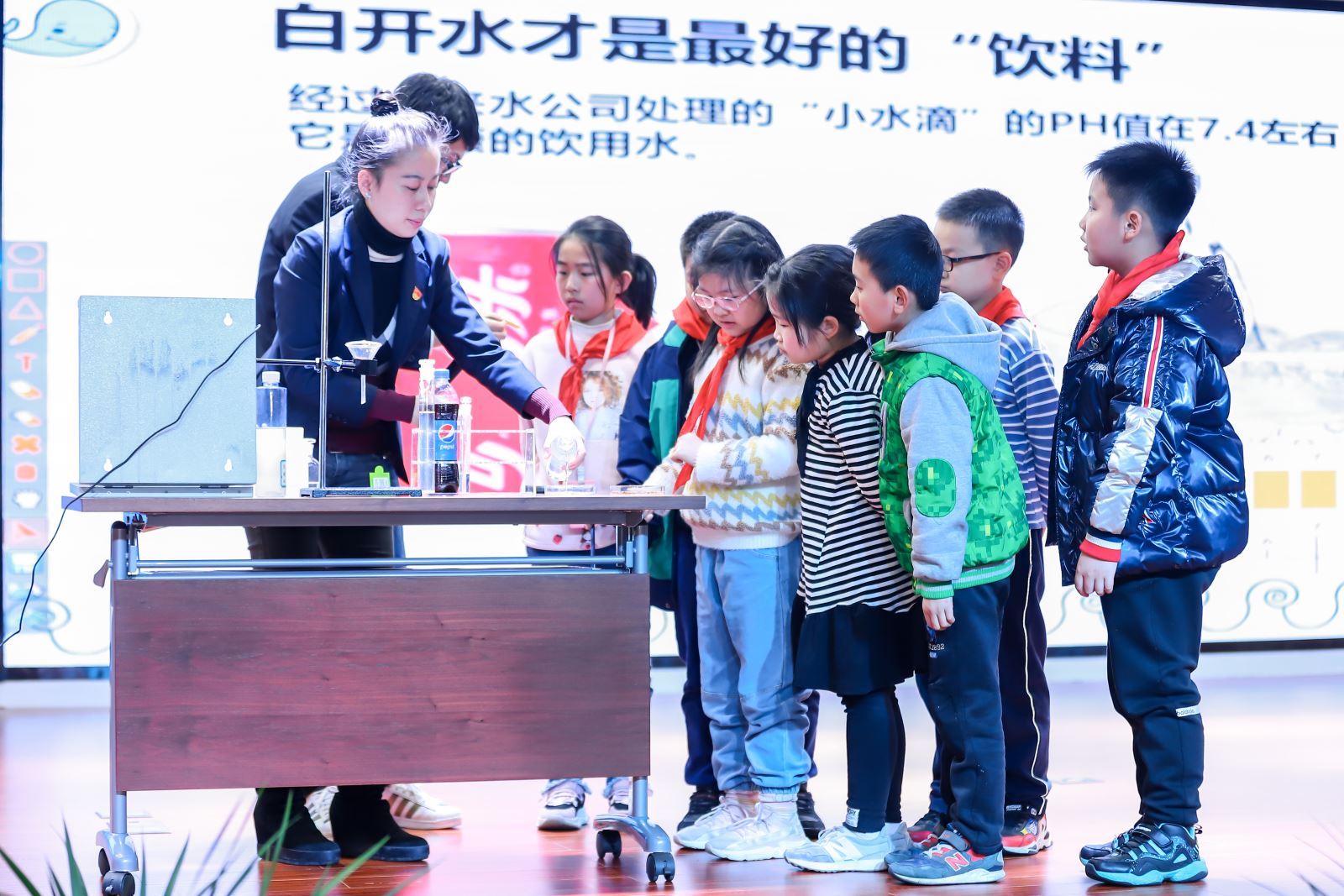 还有什么比自己亲自做实验更激动的呢!自来水与可乐的“酸碱实验”让小朋友们学习到了健康的饮水习惯。
